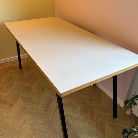Fint antracit skrivebord eller spisebord med stålben (vanger). Ideelt til hjemmearbejdsplads eller kreative sysler.