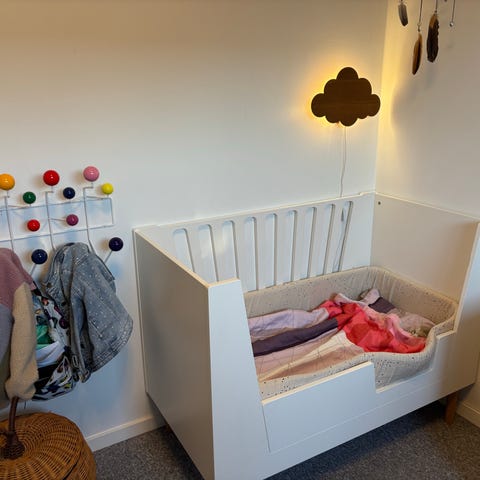 Don by dear Tremmeseng børneseng i grå farve. Sengen har tremmesider og er designet til børn. Materialet er robust og egnet til børneværelser.