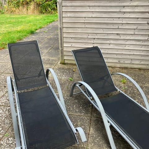 To liggestole med sjæl og charme. Dansk design Mærket:Liggestolen. Materialet er naturlig rattan. Stolene har armlæn og kan foldes til siddestilling og kan foldes helt sammen, når de ikke bruges. Nypris pr. Stk. 4000. Rattan er gået op flere steder og stolene skal repareres. Derfor den billige pris. Er du fiks på fingrene og mangler et gør det selv projekt her til vinter, så er det et godt køb. Prisen er for dem begge to samlet.