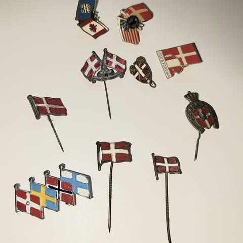 Den ene er fra 1952 med Stauning på, og den anden er en 1962 jubilæums Pin