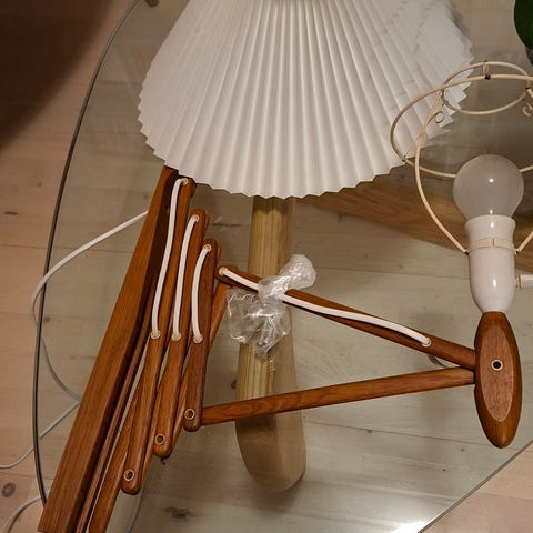 Sælger her en Sakselampe med en Le Klint lignende skærm. Lidt bulet og det er den side jeg har taget billede af. Den anden side er pænere :)