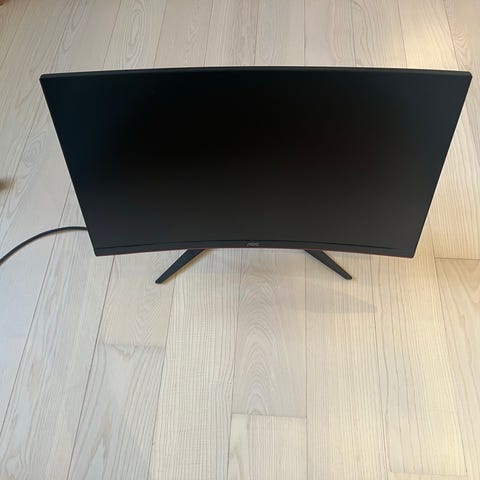 AOC 27" Curved Skærm med buet design. Skærmen har en størrelse på 27 tommer og er egnet til brug som computerskærm til forskellige formål. Er kun brugt til gaming og har ikke taget skade