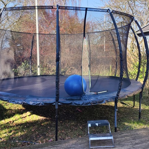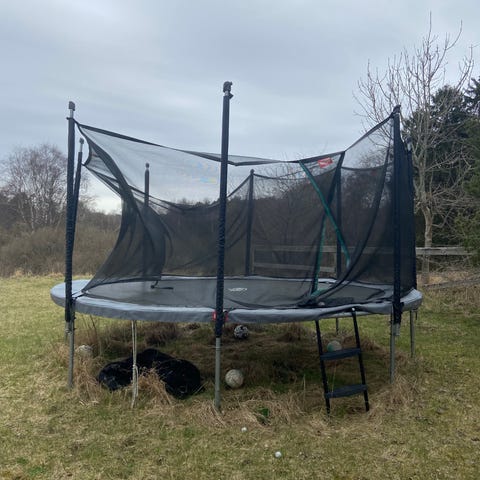 Trampolinen er købt hos P. Lindberg.