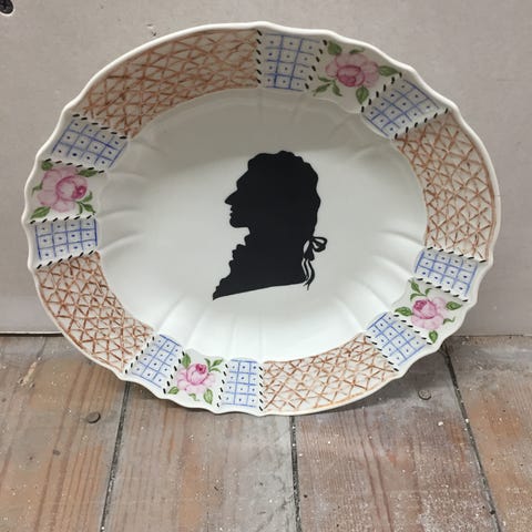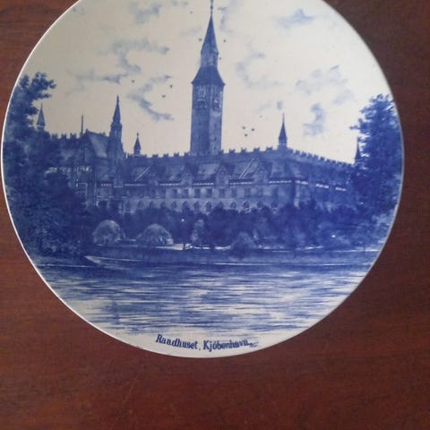 Er i lakeret metal på forsiden. Dia. 46 cm.
