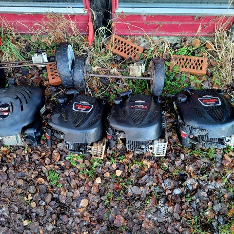 B & S 190 ccm. motor, 6,5 hk, fejlfri, starter i første træk. Resten af klipper medfølger som reservedele