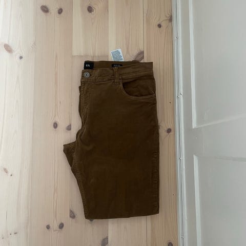 Bløde fløjlsbukser i str. 28 og blød ternet skjorte fra Selected Homme i str. M