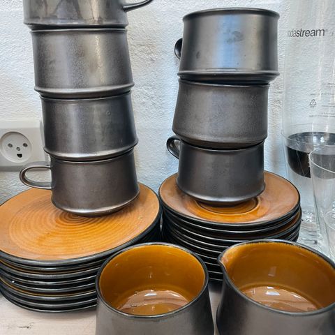 Meget fin og sjælden retro vintage kaffe/espresso stel fra Bremer & Schmidt, Tyskland. Fra 1950-1960'erne. Ingen skår eller revner, guldkanterne er fine.