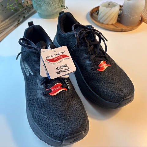 Skechers ArchFit sneakers. Råhvid. Kun brugt 2-3 gange, fremstår som nye. Original æske medfølger. Sælges for 250 kr. Fast pris. Sender gerne mod betaling af porto.