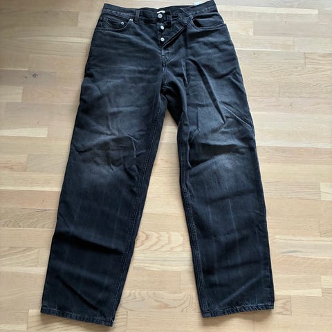 Lidt slid nederst på buksebenene, prisen er sat derefter.