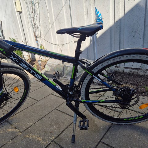 Z-zite Mountainbike med 26 tommer hjul, hvid og rød farve. Cyklen er lavet i aluminium har lås. Den har skivebremser foran og bagpå, affjedret forgaffel on