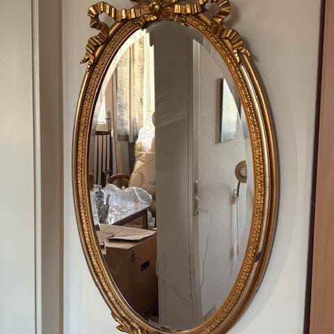 Smukt spejl med nister. Ingen skrammer eller ridser. Skal blot renses på bagsiden inden opsætning. 86 cm højt og 67 cm bredt.