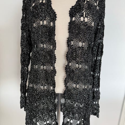 Længden er ca. 62 cm foran og ca. 67 cm bagpå, brystvidden ca. 116 cm, taljevidden ca. 114 cm og hoftevidden ca. 120 cm.