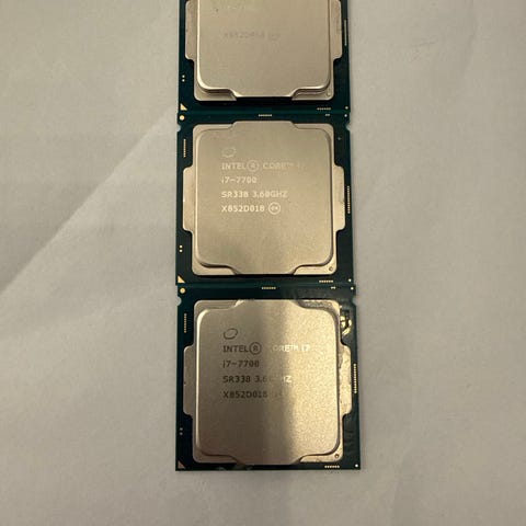 Samling af forskellige processorer (CPU'er) fra flere mærker og modeller. Indeholder forskellige størrelser, farver og former, egnet til brug i forskellige computere. Produktet er beregnet til reparation, opgradering eller samling af computere.