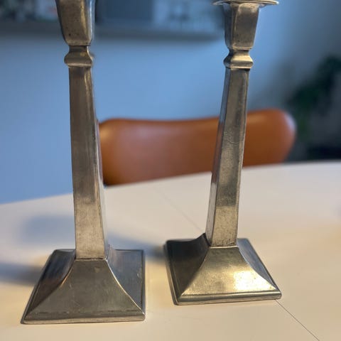 Sæt bestående af to lysestager formet som sfinxer med vinger. Fremstillet i metal med bronze farve finish. Lysestagerne har en firkantet base og et hul til at holde lys. Velegnet som dekorative elementer i hjemmet.