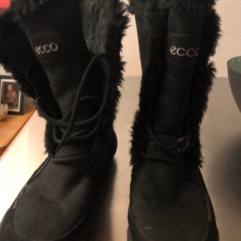 ECCO,SIBIRIA HYDEOMAX. Vinterstøvler i størrelse 41, grå farve med pelsforing. Støvlerne har snørelukning og en gummisål med mønster for bedre greb. Materialet er ruskind med blød pelsindvendig for at give varme og komfort i kolde vejrforhold. Nypris: 1500kr.