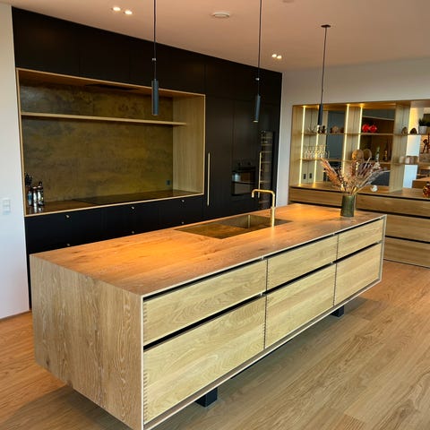 Køkkenø fra Svane Køkkenet i Notes Platinum asketræsfinér.