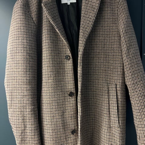 Cedarwood State Frakke i størrelse M, mørkeblå farve. Fremstillet til mænd og egnet som yderbeklædning. Frakken har knaplukning og lange ærmer.