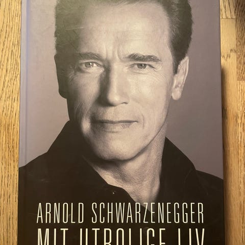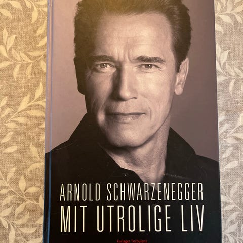 Arnold Schwarzenegger Seven Tools for Life bog med sort-hvid forsidebillede af Arnold Schwarzenegger. Bogen indeholder motiverende citater og råd om hårdt arbejde og vedholdenhed. Tekst på bagsiden fremhæver vigtigheden af at gøre sit bedste og undgå genveje for at opnå succes.