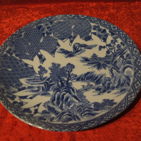 Flot håndmalet fad, Ø 31/32 cm