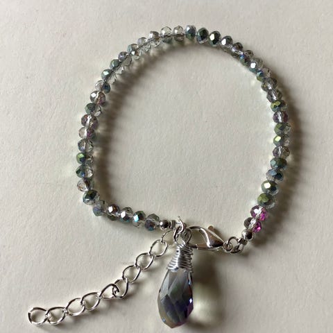 Armbånd med hvide og pastel selenit halvædelstens perler, 8mm. Med 14kt. forgyldte mellemled med cubic zirkonia.