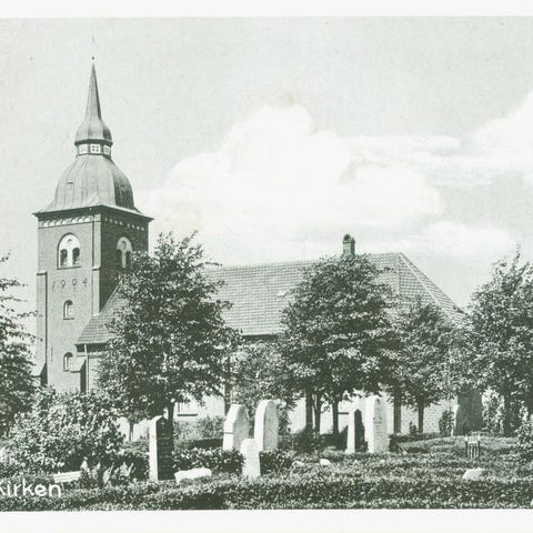 Tønder Kristkirke på postkort til Sverige, 1975