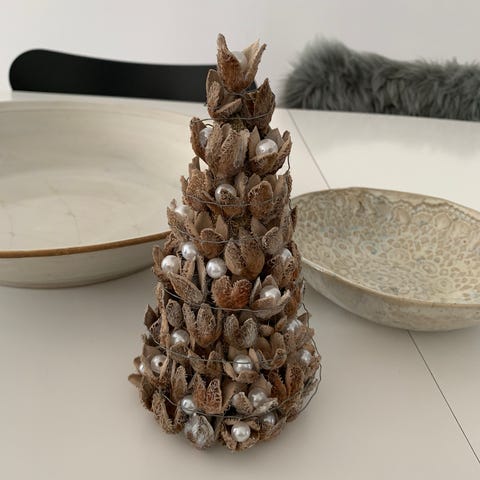 Nordic Winter kunstigt lærketræ i potte med sne og lys H120 cm. Julepynt og kurv medfølger ikke.