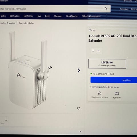 TP-Link Wifi Repeater Model RE200. Dual band (2,4 GHz og 5 GHz) 802.11ac op til 750 Mbps. I fin stand. Kan sendes for 49 DKK