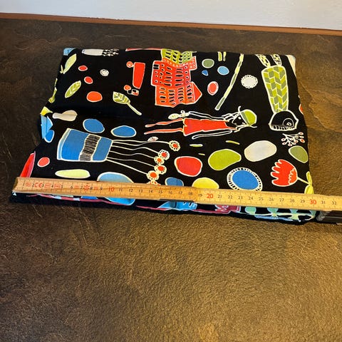 De måler ca. 17 x 50 cm. (Er lagt en gang sammen på billedet)
