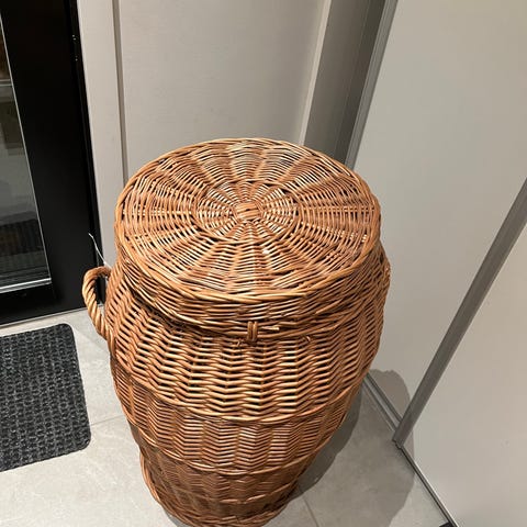 Super fin og stabil kurv med låg til vasketøj el anden opbevaring