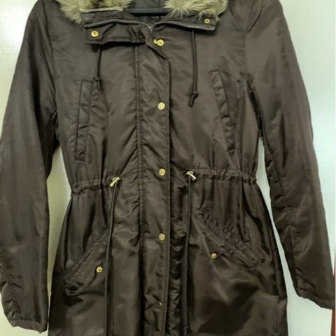 House of CB andet udendørstøj i størrelse S til kvinder. Jakken er grå og har en quiltet indvendig foring. Den har en hætte og lukkes med lynlås samt knapper foran. Materialet og designet egner sig til udendørs brug.