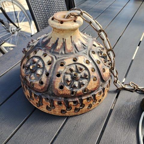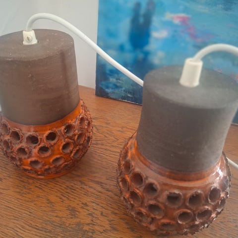 Retro smuk keramik loftlampe, i flot standmed guld top.