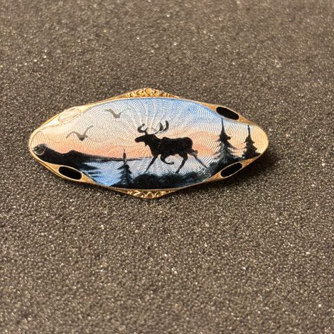 Vintage ”vifte”-broche fra Karl Lagerfeld – måler 2,5 * 4 cm.