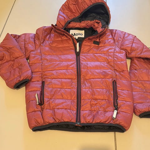 Molo sort børnejakke i størrelse 128 til piger. Ingen huller eller pletter. Jakken har en hætte med pelskant og elastik i taljen for bedre pasform. Indvendigt foret med fleece for ekstra varme. Velegnet til koldt vejr.