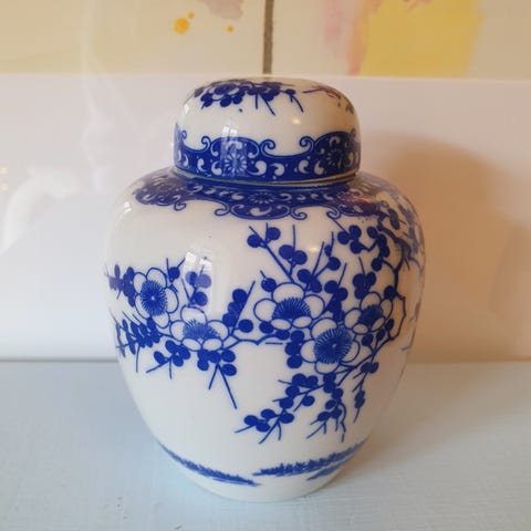 Lille keramik urne krukke med låg ca. 12 cm høj