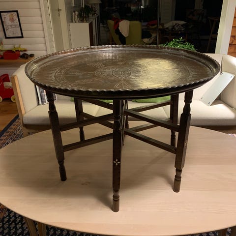Marrokansk bord med plade og ben til. Benene er nye og brugt i en meget kort periode. Sælges samlet.