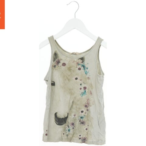 Børne tanktop med brede skulderstropper og rund halsudskæring. Toppen har et mønster bestående af små heste i forskellige nuancer af bordeaux og lilla samt små stjerner. Den er lavet af blødt materiale og har en afslappet pasform.