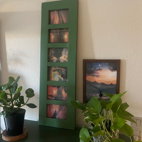 Træramme til billede med ydre mål ca. 12,8*8,7 cm. Rammen måler 1, 4 cm og er mørkebrun og har en simpel, klassisk stil. Egnet til indramning af fotografier eller kunsttryk af tilsvarende størrelse.
