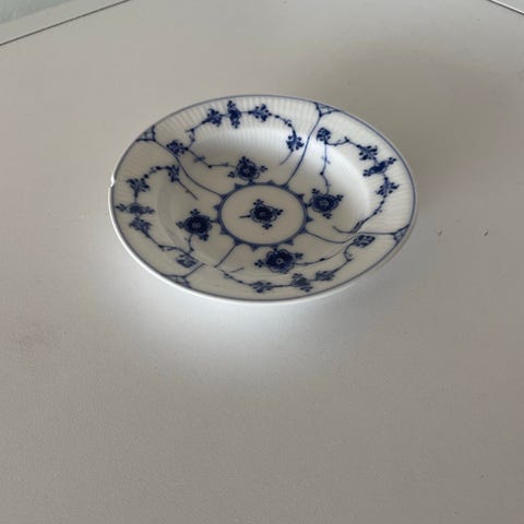 Den flotte antikke Meissen middagstallerken kan hentes i Humlebæk eller i København.