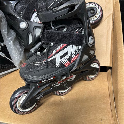 Roces Justerbare Rulleskøjter i børnestørrelse 32 - 35. Skøjterne er sorte med gule detaljer og har justerbar