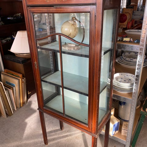 Engelsk ældre mahogni vitrineskab med tilhørende nøgle.