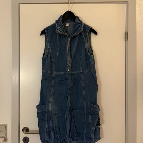 Kjole i cowboystof med i str S og lynlås i bag. Næsten ikke brugt. Ukendt mærke