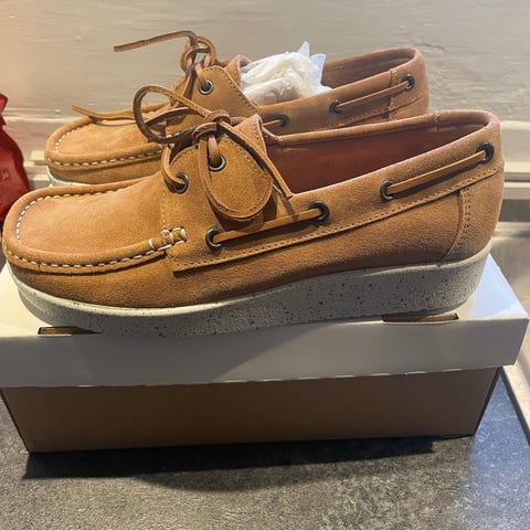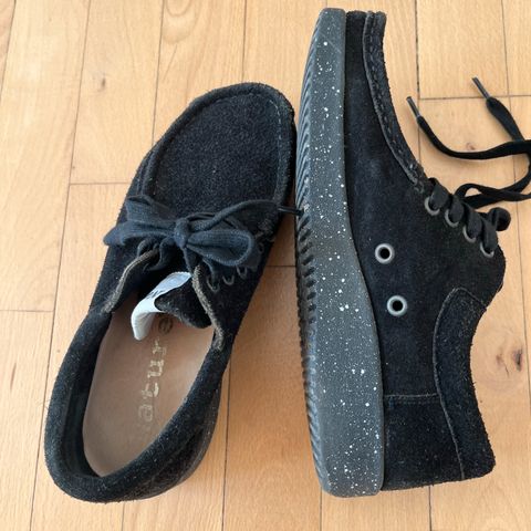 Nature loafers i sort ruskind. Brugt max 2 gange på korte strækninger. Ruskindet har en anden struktur på den ene hæl, se billede. Sådan er skoen født.