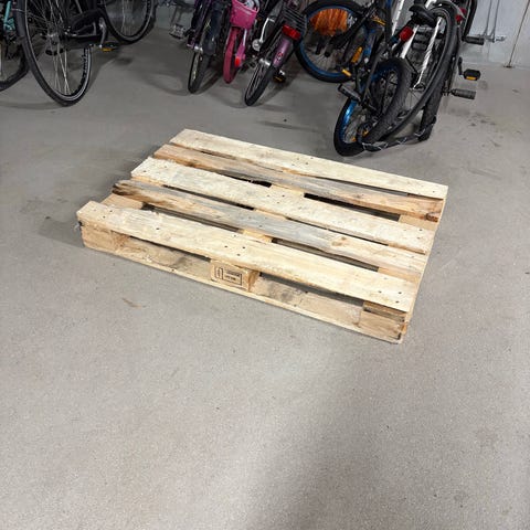 Træpalle med dimensionerne 120x80 cm. Fremstillet af træ og velegnet til transport og opbevaring af varer. Pallen har standardmål og kan anvendes i forskellige industrielle og logistiske sammenhænge.
