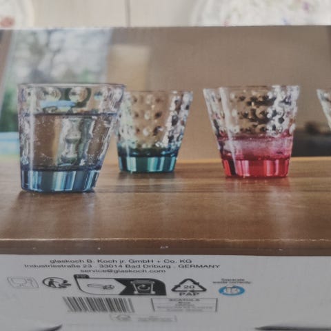 Indhold: Sættet indeholder 6 glas i forskellige farver