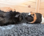 2 søde, smukke og kærlige hun marsvin søger nyt hjem, den ene pusle er fra 19.07.2025 (tre farver) og den anden trunte er fra (Sorte) de er begge med stamtavler og købt fra ordenligt sted.
