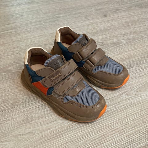 Børnesko til børn, unisex, størrelserne står under/over hver sko. Skoene er fremstillet i forskellige materialer og farver, velegnede til daglig brug for børn.