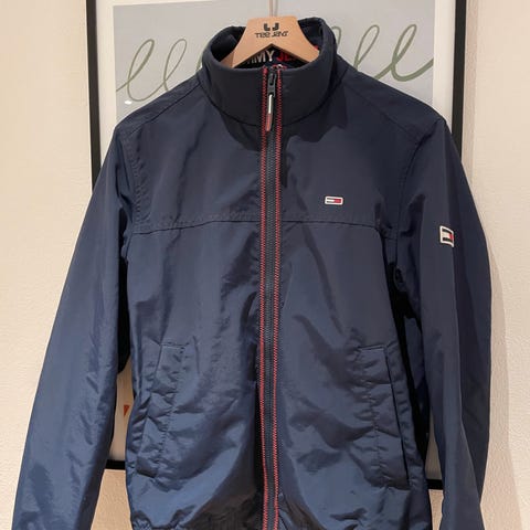 Tommy Hilfiger Jakke sælges, da jeg ikke bruger den længere. Jakken har en farvekombination af blå, hvid og rød, og er designet til udendørs brug.