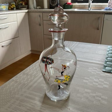 Gl.svensk karaffel. Smuk karaffel med lilla skær. Ikke glaspest el.afslag.