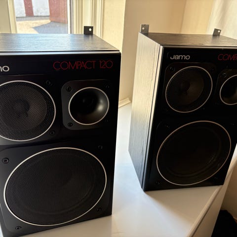 2 stk. Jamo Deco Art højttalere i sort farve. Kompakt design med bagudvendte tilslutninger og støttefod. Også til ophæng på væg.