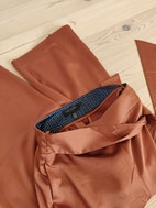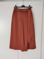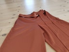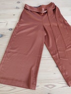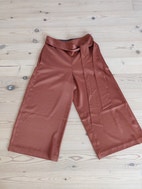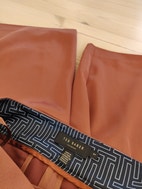 Ted Baker Bukser i størrelse XS til kvinder, der står 1 som størrelse, men jeg vil mene de er en størrelse XS/S livvidde er 68 cm. Bukserne er brune/ camel og har et bælte i taljen. Materialet fremstår som blødt og let med en glat overflade. Designet har to baglommer og en løs pasform med vidde ben, så buksen ser ud som et nederdel. Flot med et par nylonstrømper om vinteren og til bare ben om sommeren. Fremstår helt ny.